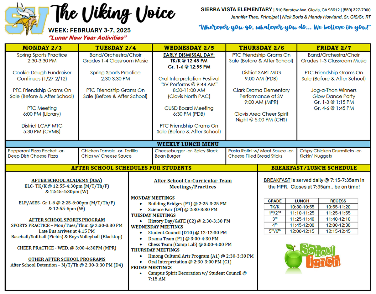 VIKING VOICE CALENDAR & NEWSLETTER - FEBRUARY 3-7, 2025